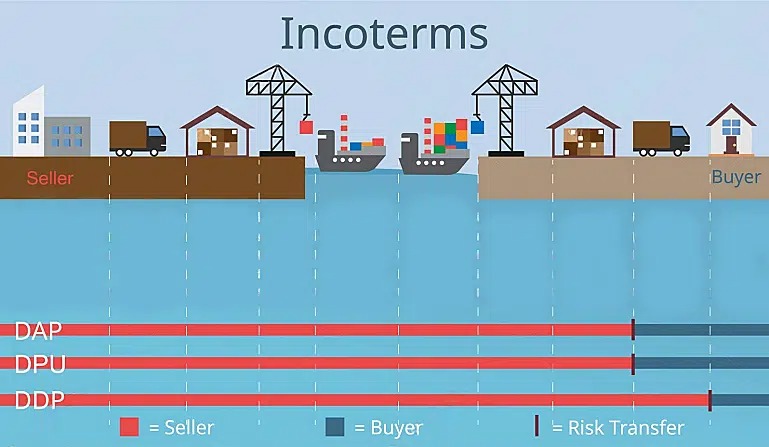 DDP (Delivered Duty Paid) and DDU (Delivered Duty Unpaid) are two Incoterms that define who is responsible for paying import duties and taxes in an international shipment. With DDP, the seller is responsible for all costs, including duties and taxes, until the goods are delivered to the buyer. With DDU, the buyer is responsible for all duties, taxes, and import clearance procedures once the goods arrive in the destination country.